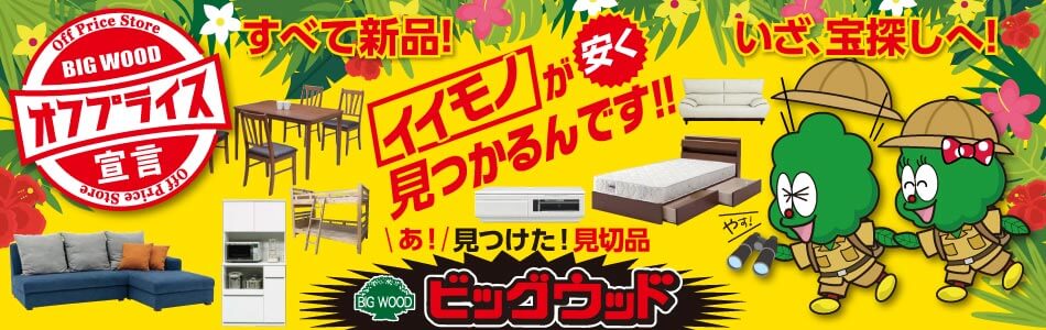 ビッグウッド玉井家具各店は4月も新品アウトレット家具が特価満開!ソファーやダイニングテーブルセット、食器棚、テレビボードなど、超特価で暮らしにステキな華を咲かせませんか?間もなく一部商品が値上がりします。良い家具を激安で買うなら値上がり前の今が絶対オススメ!ぜひ今のうちにお買い求めくださいませ♪