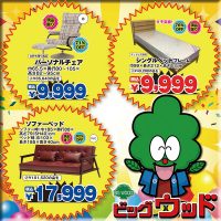 オーク突板の食卓4点セット、ブルーが可愛い2人掛けソファー、シンプルなベッドフレーム(S)が安い!7/15~17は年に一度のビッグウッド祭!日替わり限定特価品をたくさんご用意してご来店をお待ちしております♪
