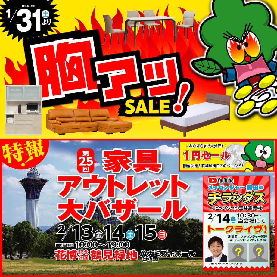 1月31日よりビッグウッド玉井家具各店では家具アウトレット胸アツセール!