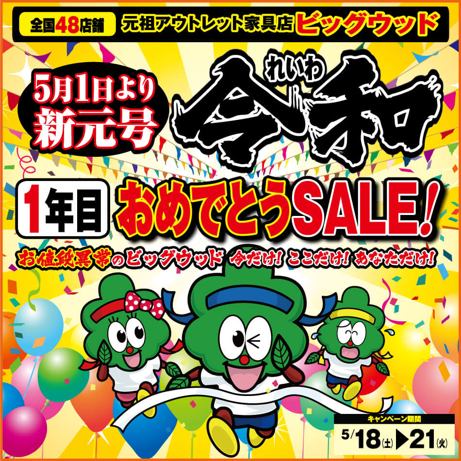 5月18日(金)~21日(火)は、令和1年目おめでとうSALE!