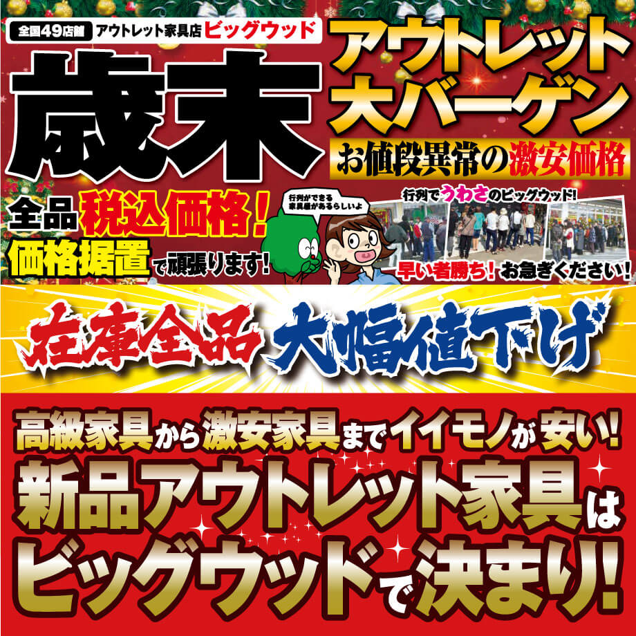 ビッグウッド東大阪店・松原店・貝塚店では土日限定日替わり1円セールもございます!